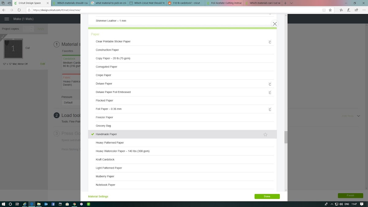 The machine is very easy to use. When you have created whatever you want to cut in Design Space, you then go to a screen that let's you pick whatever material it is that you are going to cut on.