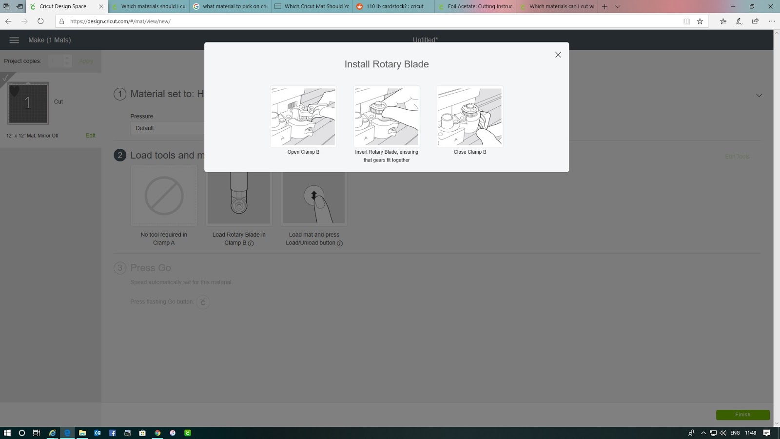 It will then tell you which blade to use which I have found really helpful. Since you can use so many different blades in this machine, it is helpful to know which one to use for which material without having to search for that information.