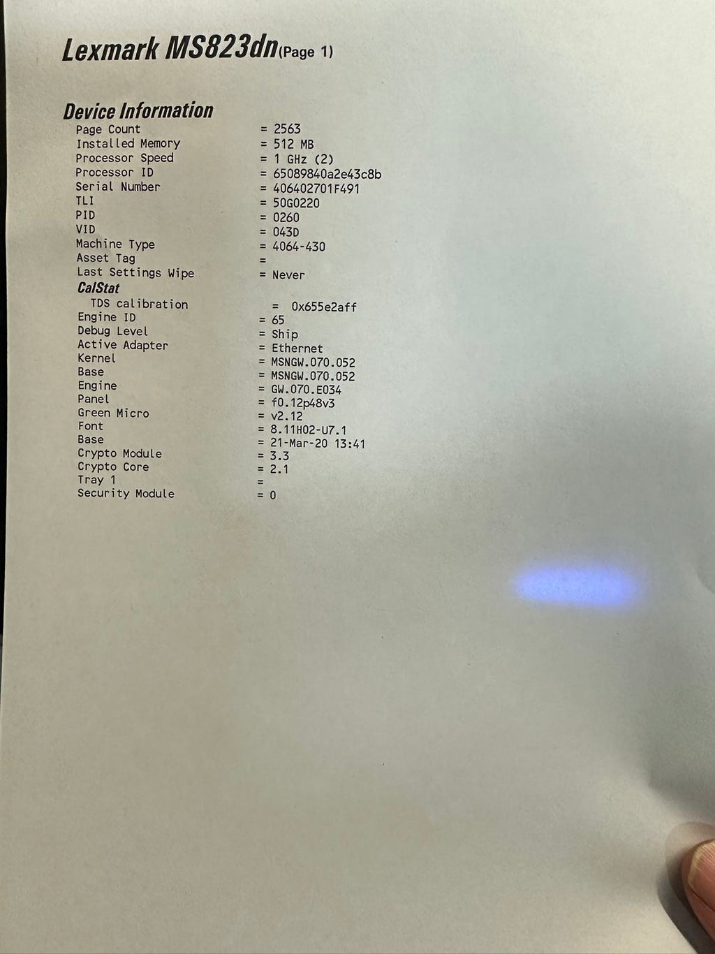 Lexmark MS823DN, A4 Duplex Monochrome Laser Printer, Up to 65 PPM, 2.4" Colour LCD Display, Direct USB [50G0239] - Ex-Display Unit
