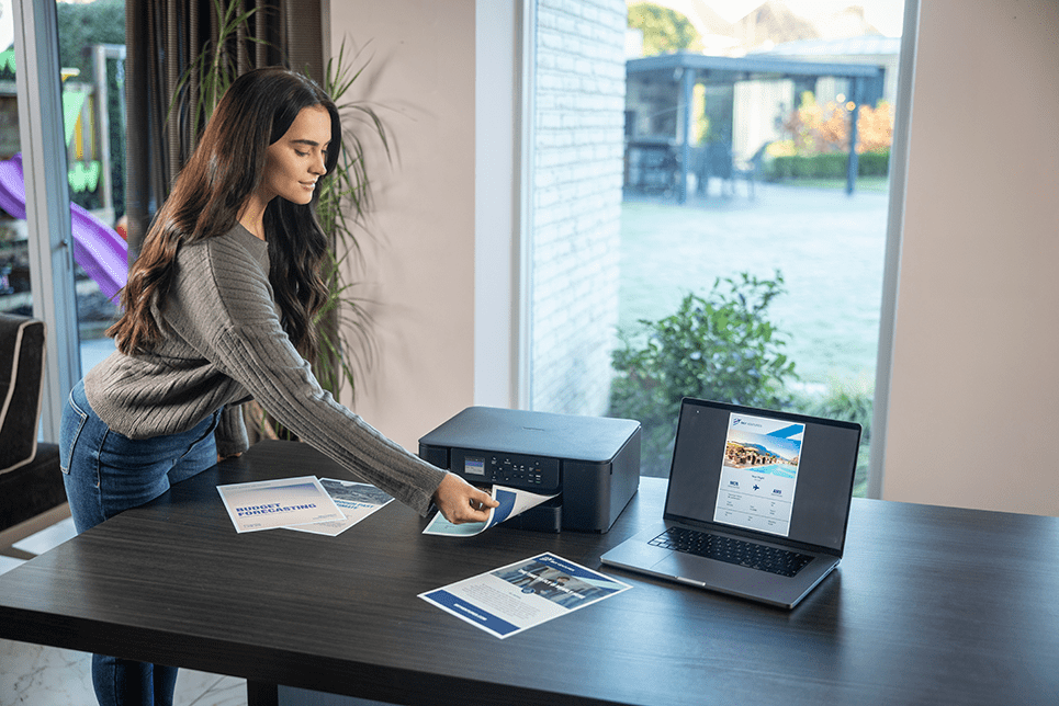 With its compact design, versatile functionality, and a 150 sheet paper input tray, the DCP-J1310DW inkjet printer makes printing effortless. Easily print, scan, and copy from one device and navigate using the built-in colour display