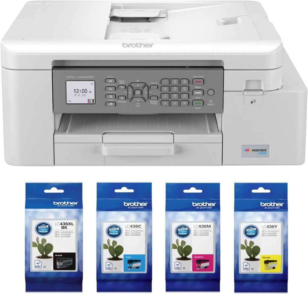 The Brother INKvestment MFC-J4340DW-XL A4 Ink Tank Wireless Multifunction Printer is an all-in-one powerhouse designed for cost-effective, high-quality printing. Featuring fast print speeds, duplex printing, and wireless connectivity, it delivers reliability for both home and office users. This bundle includes a BONUS Genuine Brother LC436 High-Yield Ink Cartridge Set for maximum value and fewer interruptions.