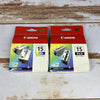 The 2x Genuine Canon BCI-15 Ink Cartridge Set includes one genuine black (BCI-15BK) and one genuine colour (BCI-15C) ink cartridge, designed specifically for Canon I70 and I80 photo printers. These genuine Canon cartridges ensure sharp text, bright colours and consistent print results every time.