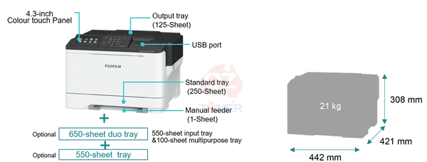 Bundle: Fujifilm ApeosPort Print C3830SD A4 Colour Laser Printer+BONUS:550x Sheets Paper Tray EC104314 [APPC3830 Bundle]