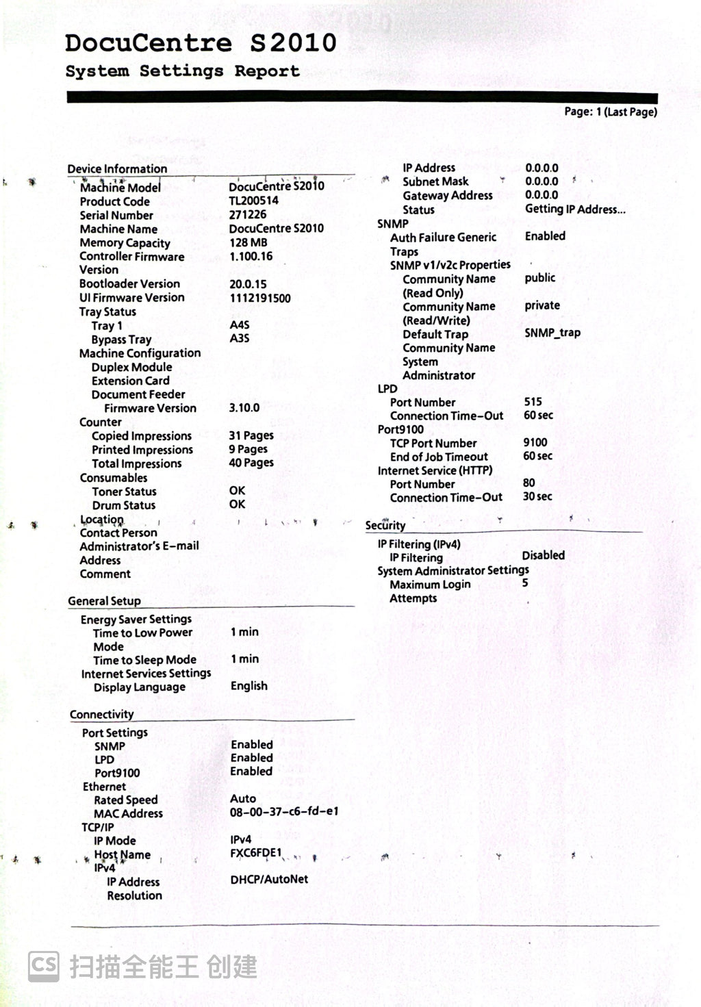 *Clearance!* Fuji Xerox S2010 A3 Mono MFD Printer 20PPM *Ex-Demo Unit* [DCS2010NW@-A]
