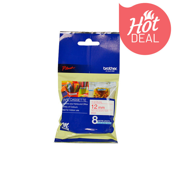 Genuine Brother MK232 12mm Red on White Labelling Tape (8M) M-K232