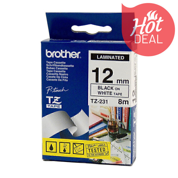 Genuine Brother TZe-231 laminated 12mm x 8m Black-On-White Tape TZ231 PT-1010 PT-1090