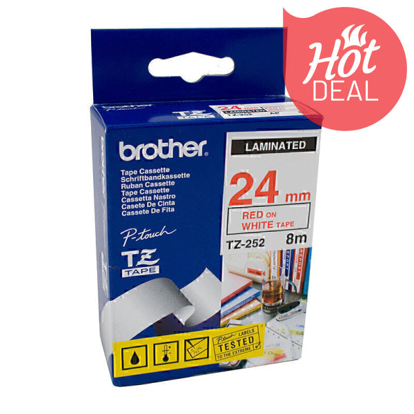 Brother TZe252 24mm Red on White Labelling Tape for PT-P700/P710BT/P750W/P900W
