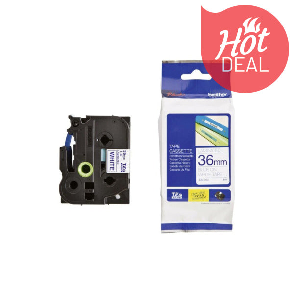 Genuine Brother TZe-263 36mm Blue on White Labelling Tape