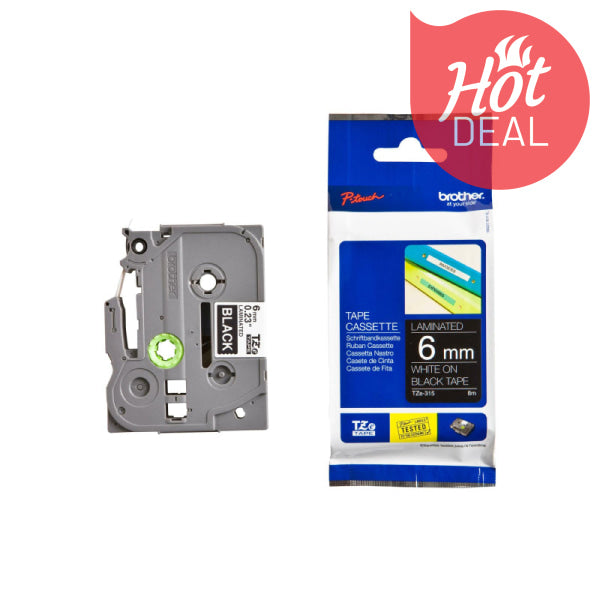 Genuine Brother TZe-315 6mm White on Black Labelling Tape (8M) for PT1010/PT1650/PT2030