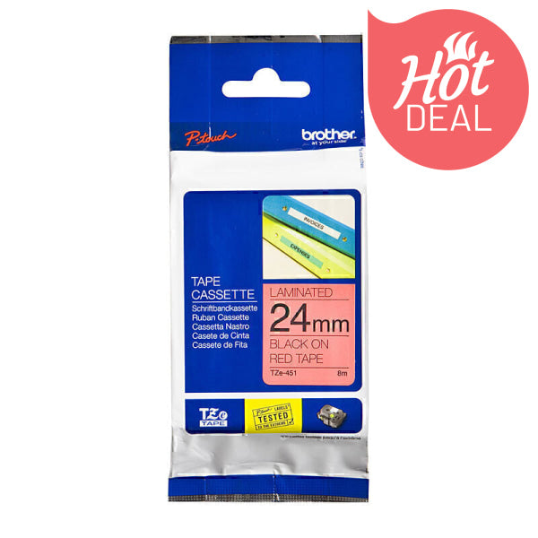 Genuine Brother TZe-451 24mm Black on Red Labelling Tape for PT-P700/P710BT/P750W