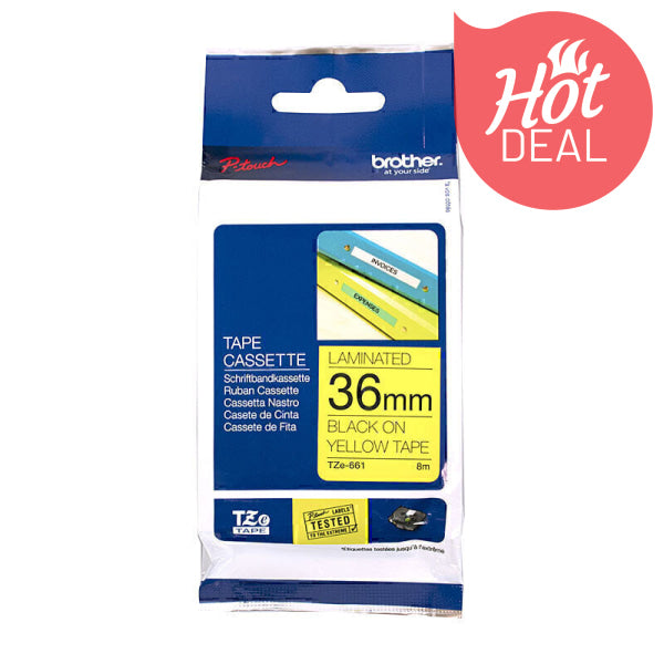 Genuine Brother TZe-661 36mm Black on Yellow Labelling Tape