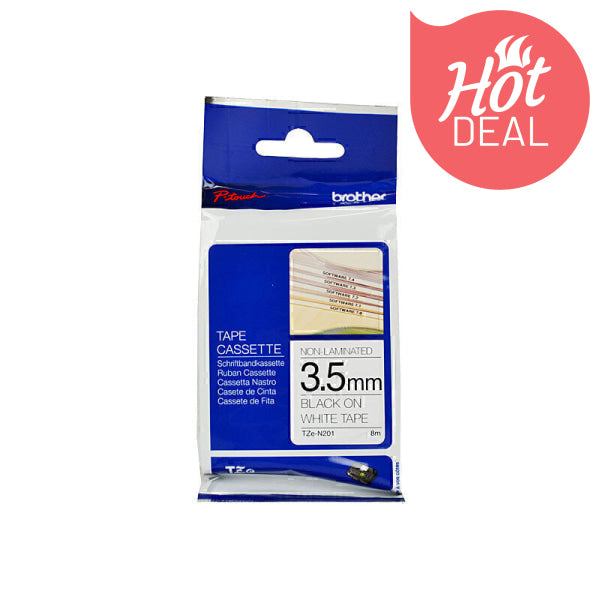 Brother TZe-N201 3.5mmx8m Black on White Non-Laminated Tape->PT-1010 *CLEARANCE*