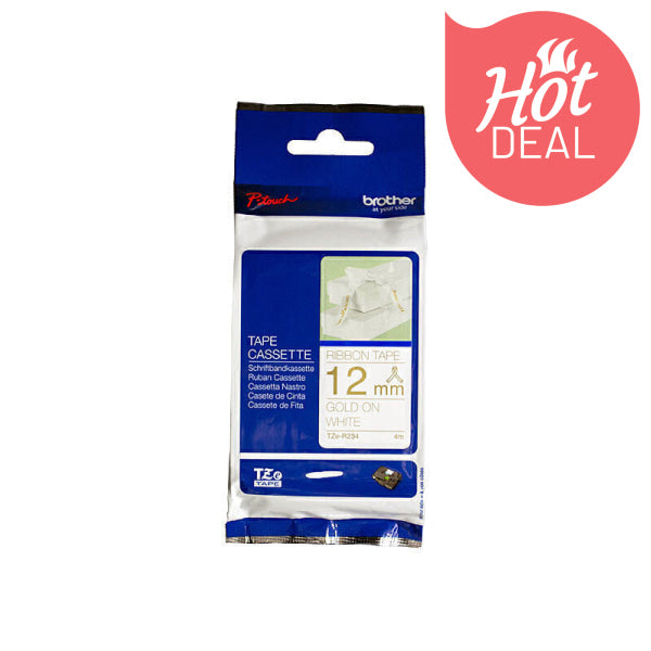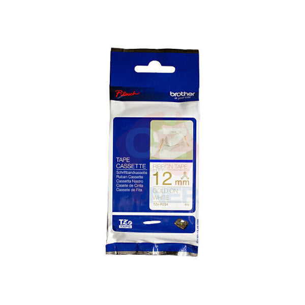 Genuine Brother TZe-R234 12mm x 4m Gold-on-White Labelling Tape