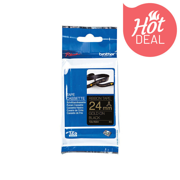 Genuine Brother TZe-R354 24mm x 4m Gold-on-Black Labelling Tape for PT-D610BT PTP910BT