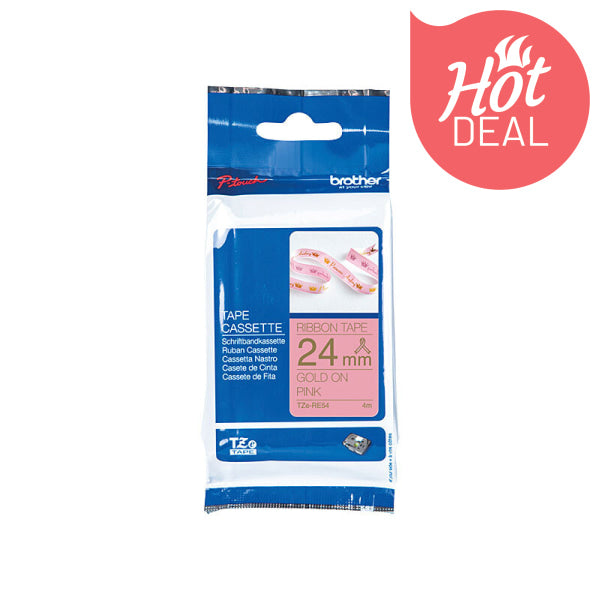 Genuine Brother TZe-RE54 24mm x 4m Gold on Pink Labelling Tape for PT-D610BT, PTP910BT