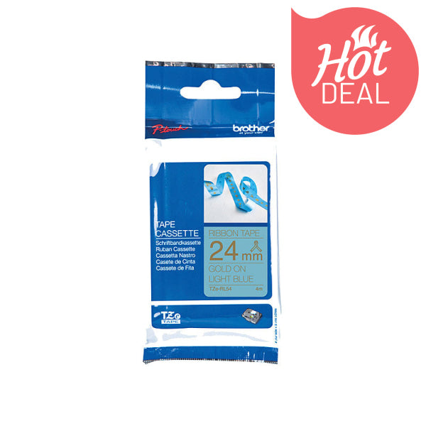 Genuine Brother TZe-RL54 Gold on Light Blue 24mm x 4m Labelling Tape for PT-D610BT PTP910BT