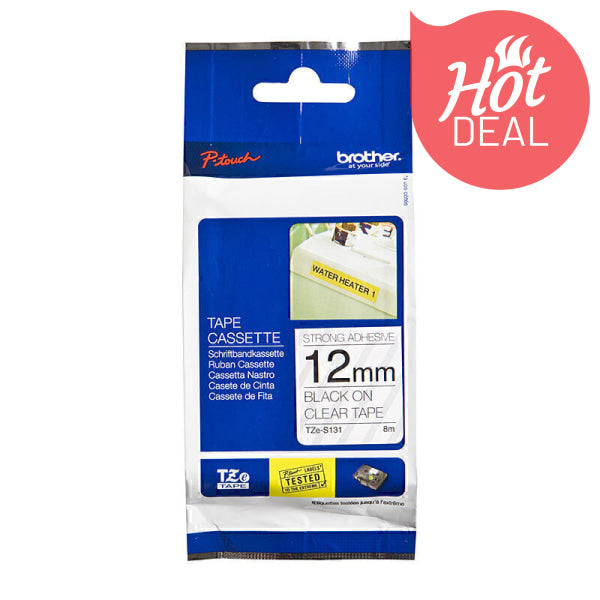 Genuine Brother TZe-S131 12mm Black on Clear Strong Adhesive Labelling Tape
