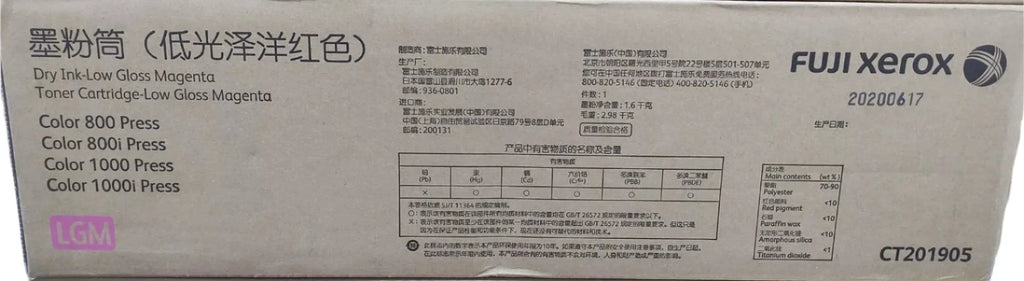 The Genuine Fuji Xerox CT201905 Low Gloss Magenta (LGM) Toner is designed specifically for the Fuji Xerox Color 800 and 1000 Press, delivering professional-grade prints with a vibrant magenta hue and a low gloss finish. This OEM toner ensures smooth, consistent performance, providing high-quality results with every print. Ideal for high-volume production environments, the low gloss feature adds a subtle finish to printed materials, making it perfect for commercial printing projects.