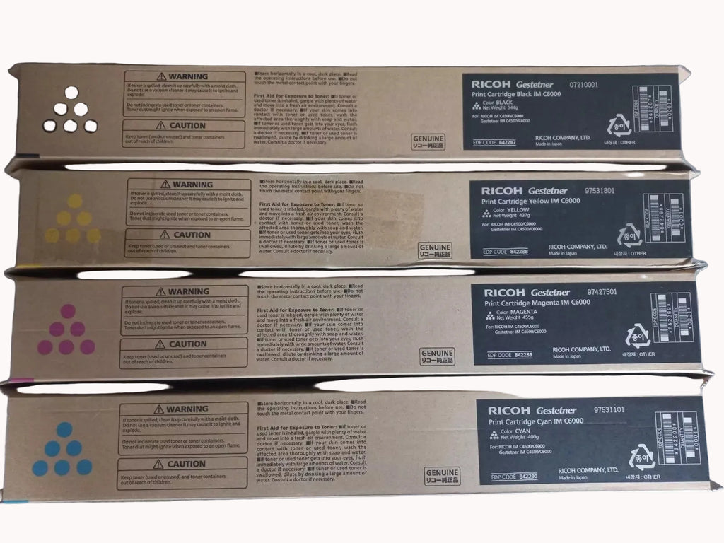 The 4x Pack Genuine Ricoh Toner Cartridge Set is an original OEM consumable bundle designed for Ricoh IM C4500 and IM C6000 colour multifunction printers. This complete CMYK set ensures consistent colour accuracy, sharp text and reliable performance for demanding office and enterprise printing environments.