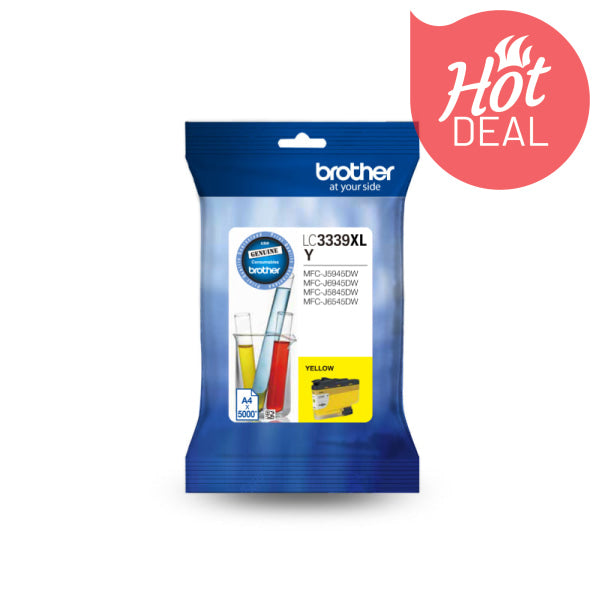 The Genuine Brother LC3339XL Yellow Ink Cartridge is tailored for Brother MFC-J5845DW, J5945DW, J6545DW, and J6945DW printers, providing exceptional color printing with a high yield of up to 5,000 pages. This high-yield cartridge produces vibrant yellow hues, making it ideal for creating professional-quality documents, graphics, and photos. As an authentic Brother product, the LC3339XLY ensures consistent, reliable performance and high-quality output, perfect for high-volume printing environments.