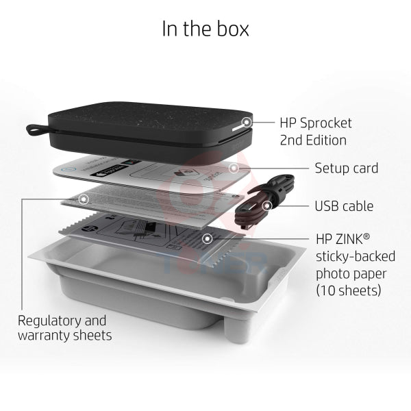 - HP ZINK PHOTO PAPER – load the 10 sheets of HP ZINK 2x3" Sticky-backed paper into your portable printer and create smudge-proof photos and stickers