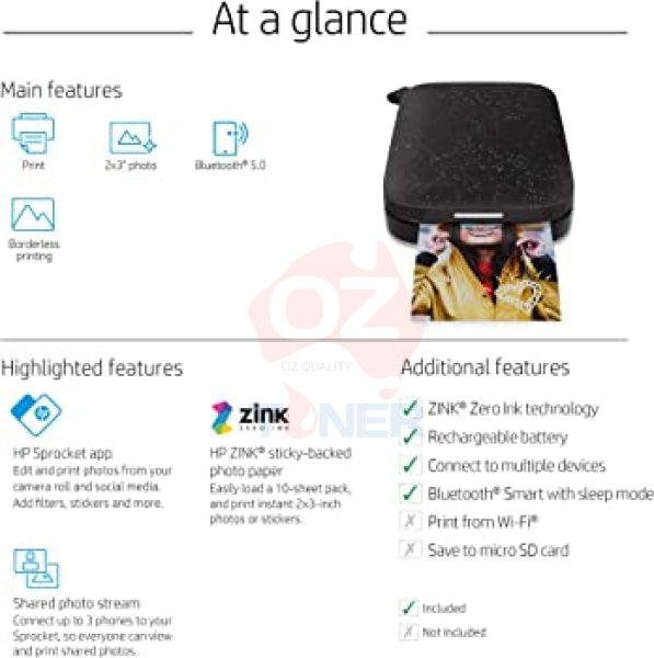 - EXCLUSIVE FASHIONABLE FEATURES - curate your photos with the HP Sprocket app, and access exclusive frames, filters, and stickers for your 2x3” Photos