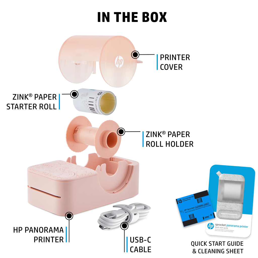 Personalize your photo and label creations in a fun and exciting new way with the HP Sprocket Panorama Photo and Label Printer. This one-of-a-kind printer lets you instantly print your favorite photo projects, labels, photobooth strips, and more, from 0.5” to 9” long on 2” wide sticky-backed paper!