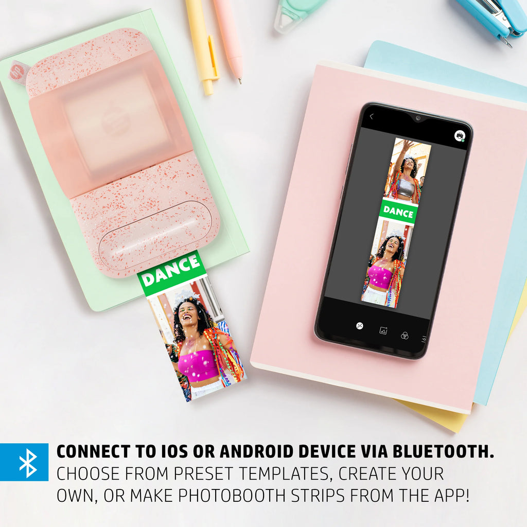 Print your creations on Zink sticky-backed paper and stick them to your scrapbook, bullet-journal, photo wall and more! Zink photo paper prints without the need for expensive ink or toner, and has colors embedded inside for amazing resistance to water, smudges, and tears.
