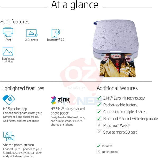 HP Sprocket Portable Instant Photo Printer – 2” x 3” Lilac