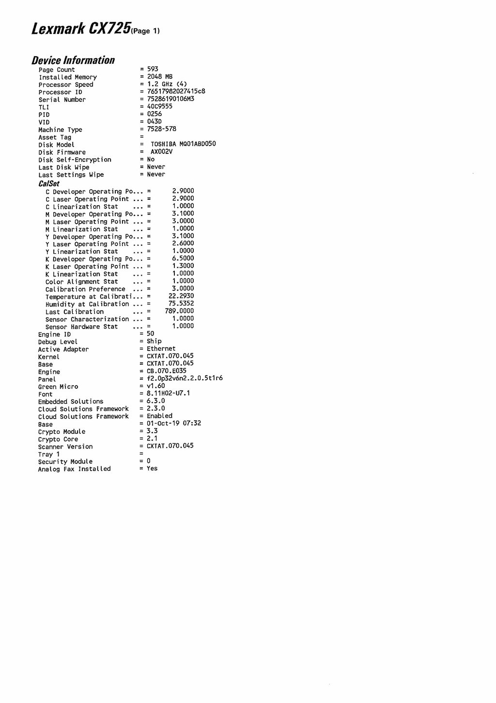 - Lexmark CX725dhe colour laser multifunction printer with hard disk
