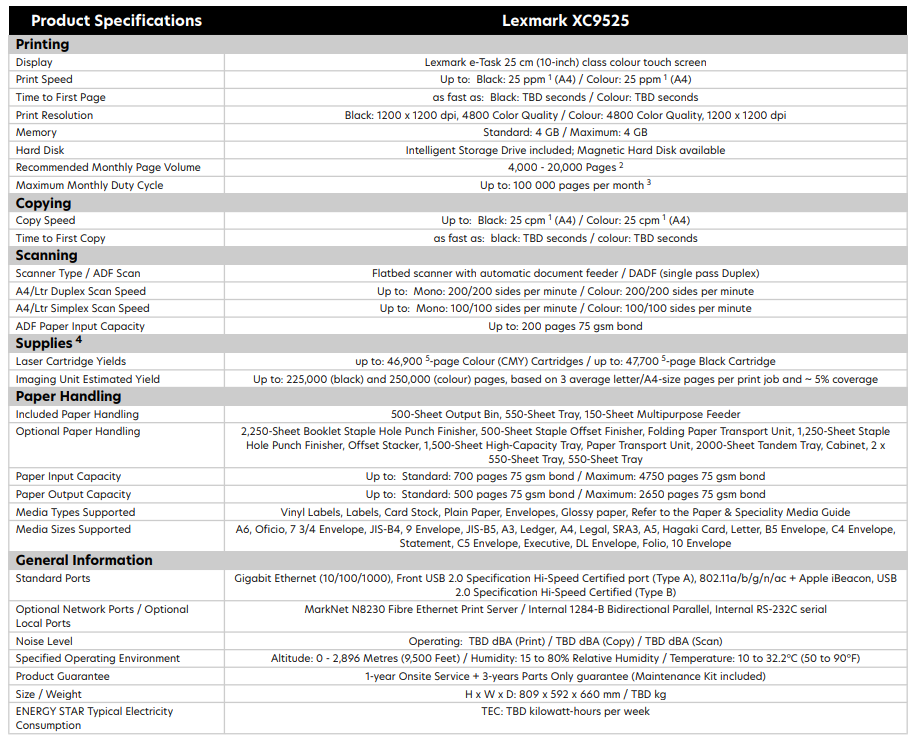 Lexmark XC9525 multifunction printer+ 550-Sheet Tray (20L8800)