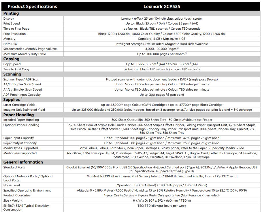 Lexmark XC9535 A3 Color Multifunction printer 35PPM 550-Sheet Tray [20L8800]