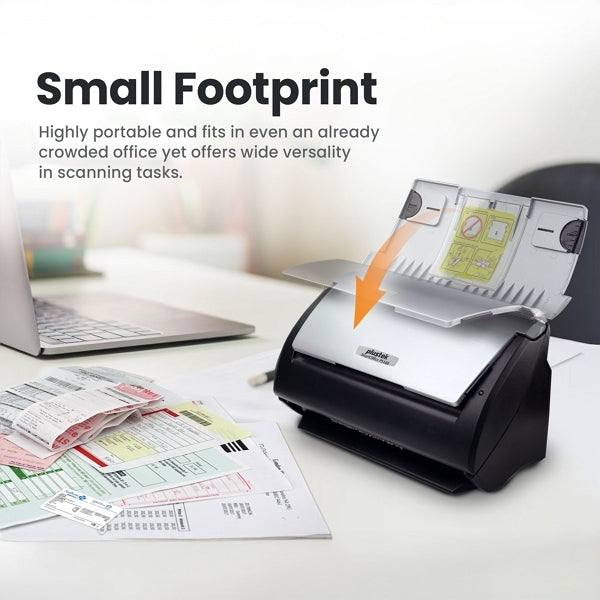 The Plustek PS188 is a high-speed duplex document scanner designed for offices that need fast and efficient scanning. With double-sided scanning at up to 30 pages per minute and a 50-sheet automatic document feeder (ADF), it can handle batch documents quickly and reliably.