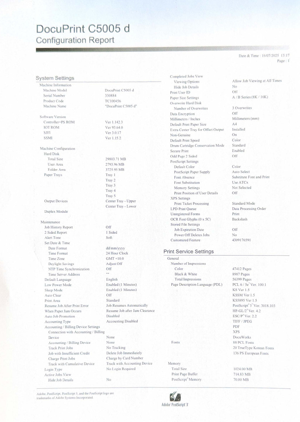 An A3 colour laser printer – delivering fast, high-quality printing that meets the demanding needs of today’s business environments. With advanced colour technology, secure printing, and versatile media handling, the DocuPrint C5005d is the ideal solution for professional office printing.
