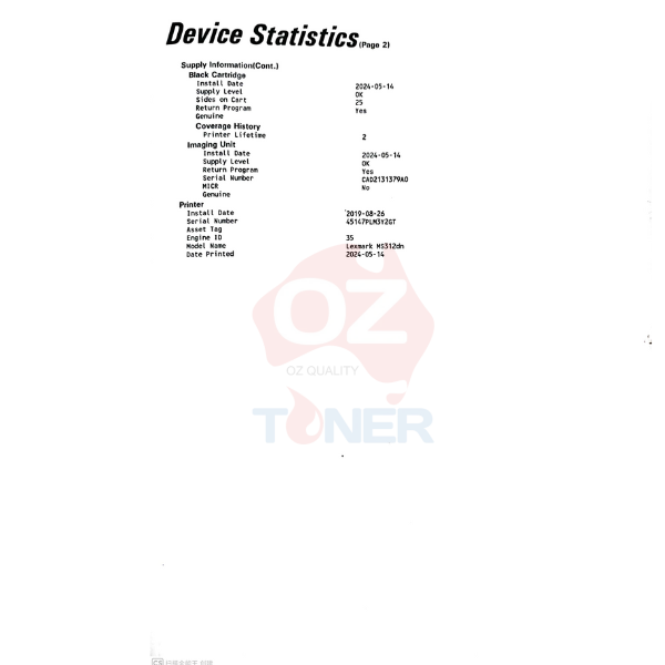 In The Box Lexmark MS312dn laser printer, Up to 1500 pages* return program toner cartridge, Return programme imaging unit, Software and documentation, CD Setup guide or sheet (network and local attachment), Power cable(s) Statement of limited warranty / guarantee, Stability sheet and safety sheet or booklet