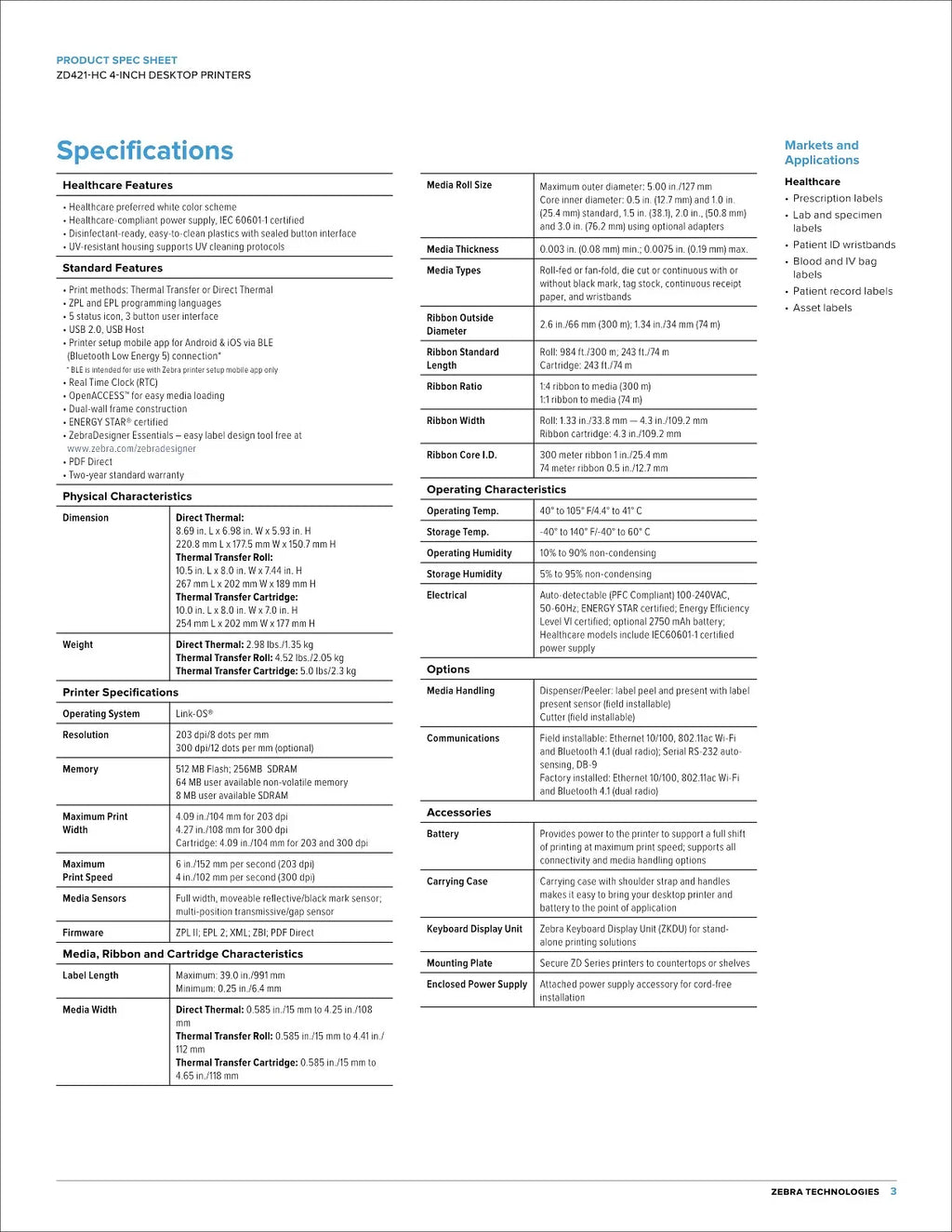 - Supports ZPL II, EPL2, XML, PDF Direct, Zebra Link-OS