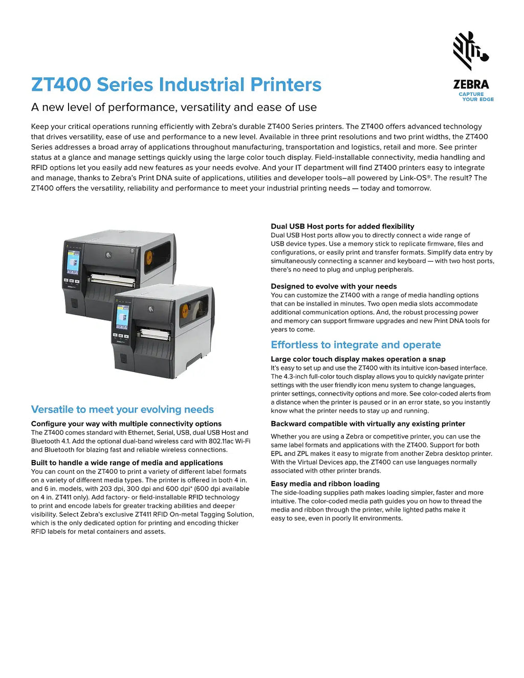 - Zebra Print DNA software suite with PrintSecure for enhanced security
