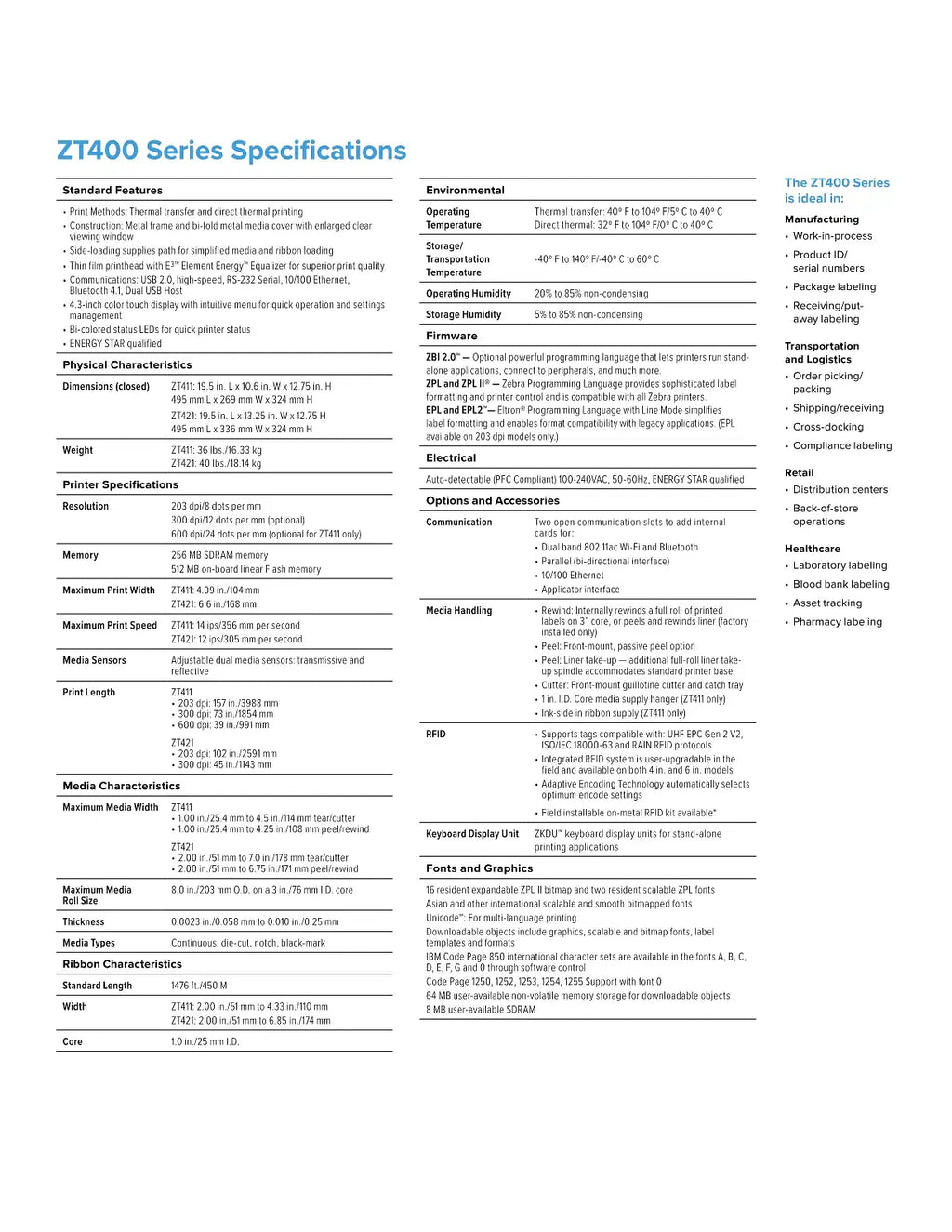 - Supports ZPL II, EPL2, PDF Direct, and Zebra Link-OS